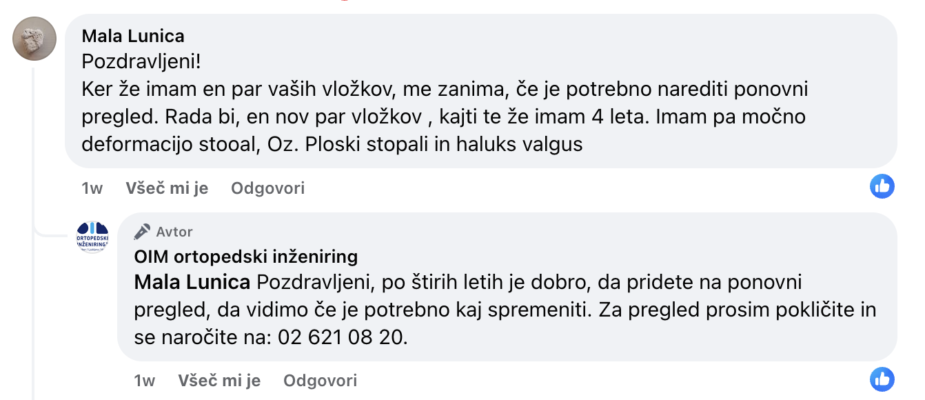 "Storitev, odnos do stranke in strokovnost so odlični. Najpomembnejše: vložki so mi pomagali odpraviti bolečine v gležnju. Hvala lepa vsej ekipi."